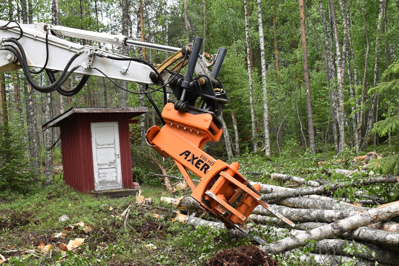 Axer 650 HD -energiakoura on sopiva vaihtoehto yli 12 tonnin kaivinkoneisiin. Se on Axer 650 -mallin isompi ja järeämpi versio. Olemme vahvistaneet rungon, käpälät, tapit ja lisänneet katkaisuvoimaa niin, että energiakoura soveltuu erittäin järeidenkin puiden poistoon helposti ja soveltuu asennettavaksi yli 30 tonnin kaivinkoneisiin saakka.