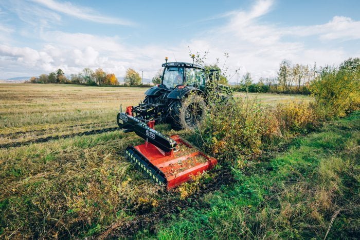 Ilsbo M160 Standard asennetaan traktorin 3-pistekiinnitykseen ja voit käyttää ketjukatkaisijaa S120 Standard -sivusiirron kanssa, jolloin saat lisäulottuvuutta (402 cm) leikkuutyöhön.